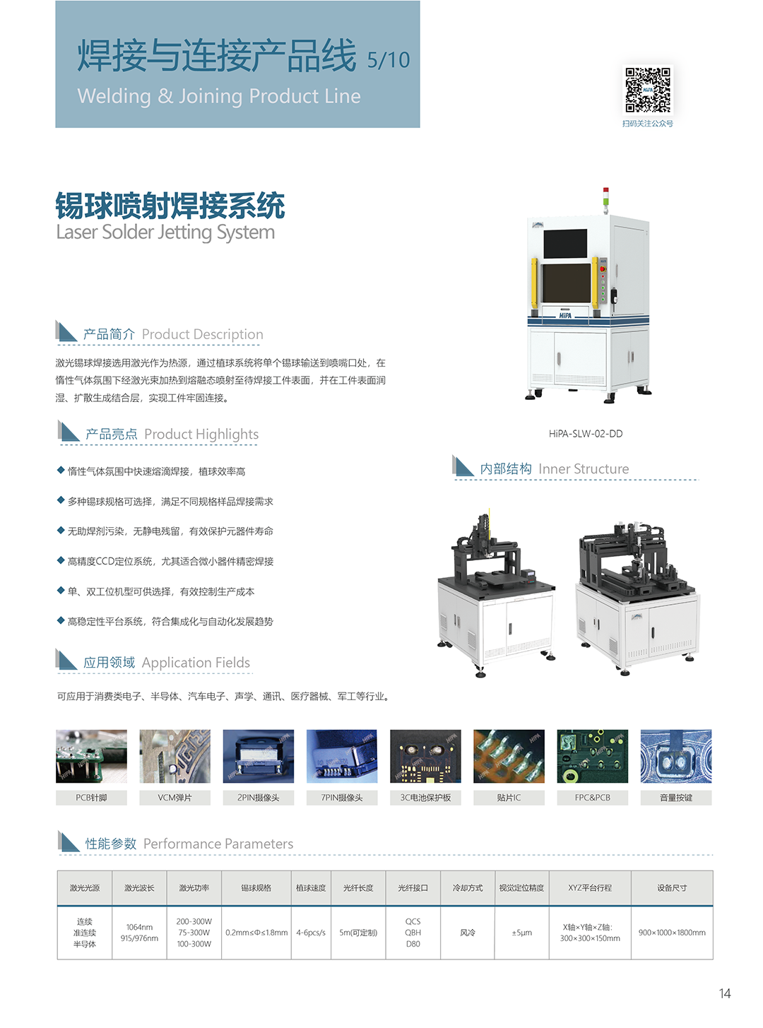 激光錫球焊接選用激光作為熱源,通過植球系統將單個錫球輸送到噴嘴口處,在惰性氣體氛圍下經激光束加熱到熔融態噴射至待焊接工件表面,并在工件表面潤濕、擴散生成結合層,實現工件牢固連接。