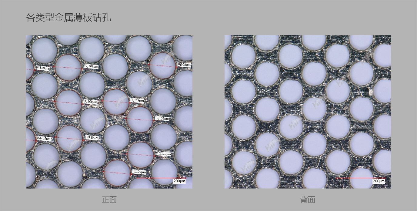 金屬材質物料上的激光鉆孔機,最小孔徑低至0.1mm。
