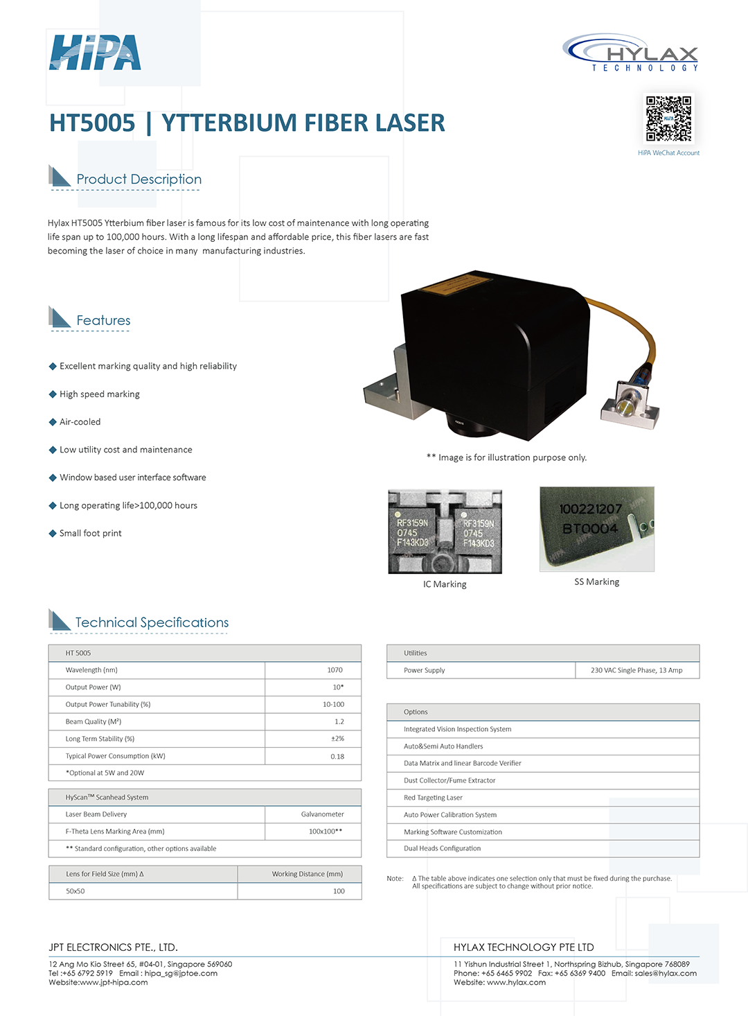 Hylax HT5005 Ytterbium fiber laser is famous for its low cost of maintenance with long operating life span up to 100,000 hours. With a long lifespan and affordable price, this fiber lasers are fast becoming the laser of choice in many manufacturing industries.