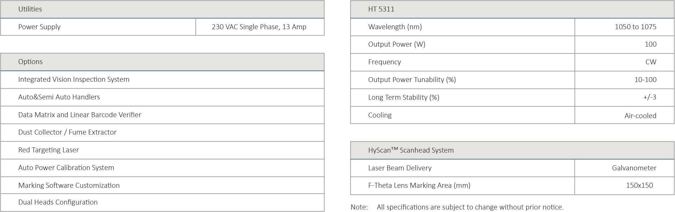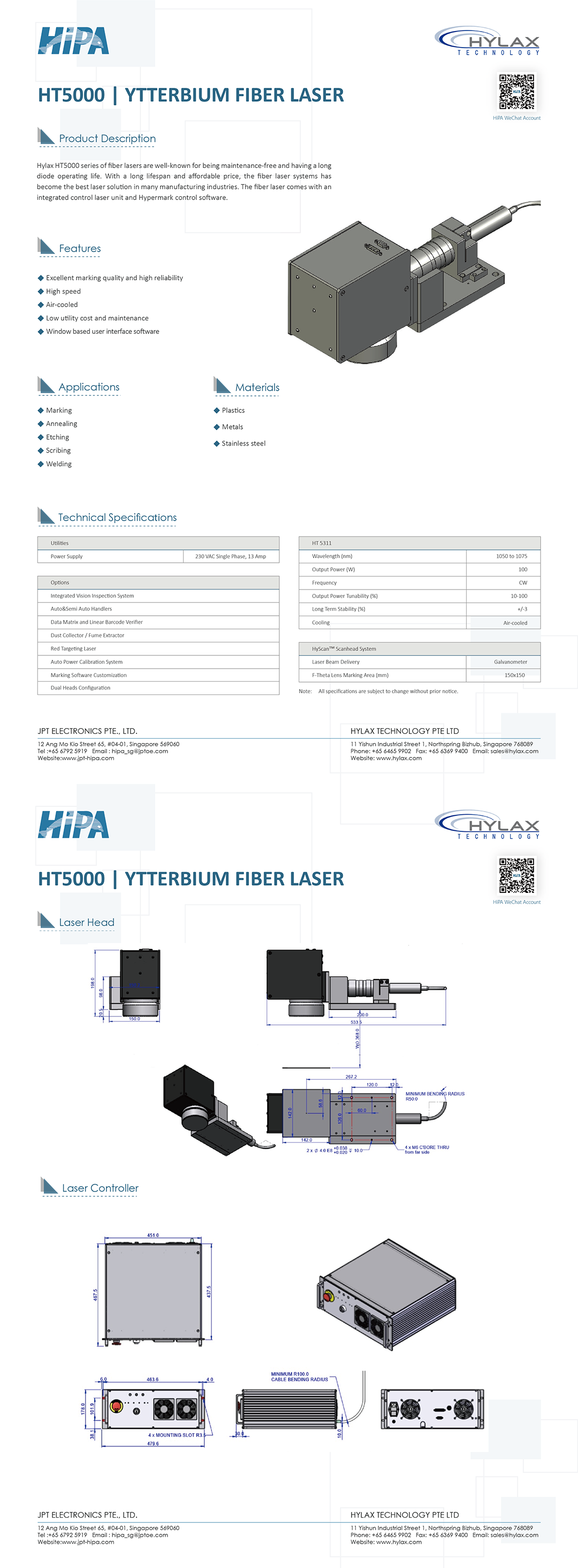 Hylax HT5000 series of fiber lasers are well-known for being maintenance-free and having a long diode operating life. With a long lifespan and affordable price, the fiber laser systems has become the best laser solution in many manufacturing industries. The fiber laser comes with an integrated control laser unit and Hypermark control software.
